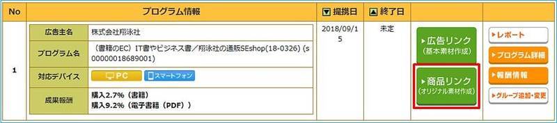 - A8.net にログインし、作成したい広告プログラム情報を表示します。